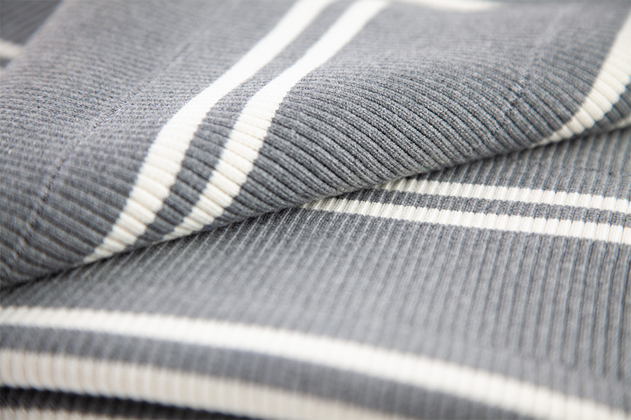 Trong dệt vải sườn đan, việc sắp xếp các sợi dọc và sợi ngang ảnh hưởng trực tiếp đến kết cấu và độ đàn hồi của vải. Các sợi dọc được sắp xếp dọc theo chiều dài của vải, trong khi các sợi ngang được chèn từng hàng vuông góc với hướng dọc. Điểm độc đáo của vải sườn đan nằm ở cấu trúc trơn (dệt kim) và thớ ngang (kim tuyến) xen kẽ, tạo thành kết cấu lõm và lồi đáng kể theo hướng thẳng đứng, do đó tạo cho vải có độ co giãn và đàn hồi tuyệt vời.